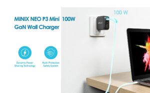 MINIX NEO P3 100W Turbo 4-Ports GaN Wall Charger, 3 x USB-C port Fast Charging Adapter(Max 100W/20W), 1 USB-A (Max 18W). Compatible with MacBook Pro Air, iPad Pro, iPhone 13,12,Galaxy S9 and More.
