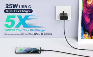 Newding 25W USB C Super Fast Charging, Type C Charger for Samsung Galaxy S22, S21, S21 Ultra 5g, S21+, S20, A70, A53, A52, Note 20, Note 10, UK Plug Power Adapter with Cable 1.5m, SFC Adaptive AFC 15W