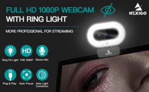 NexiGo StreamCam N930E with Software, 1080P Webcam with Ring Light and Privacy Cover, Auto-Focus, Plug and Play, Web Camera for Online Learning, Zoom Meeting Skype Teams, PC Mac Laptop Desktop