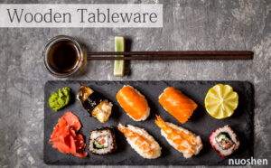 uoshen Wooden Tableware,3PCS Japanese Style Wooden Cutlery Set in an Oriental Style Pouch with 1 x Spoon, 1 x Fork, 1 x Chopsticks with Pouch Sushi Dinnerware Tableware for Family Travel