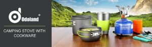 Odoland Camping Cookware Kit for 3-4 People Portable Stainless steel Cooking Set for Camping, Backpacking, Outdoor Cooking and Picnic