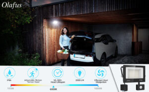 Olafus LED Floodlight, 20W Security Light with Motion Sensor, Outdoor Flood Lights Mains Powered, IP65 Waterproof, 2000 Lumen, 6000K Daylight White Lighting for Garden Garage with 5M Wire (2 Pack) [Energy Class A++]