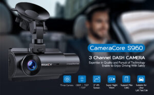 ORSKEY Dash Cam 3 Channel,1080P+720P+720P Front Rear Inside Car Camera, IR Night Vision, Three Way Triple Dash Camera Support 128GB Max