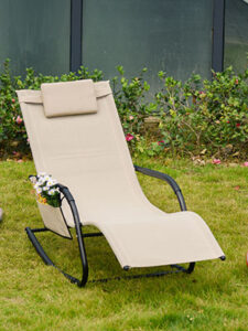 Outsunny Breathable Mesh Rocking Chair Patio Rocker Lounge for Indoor & Outdoor Recliner Seat w/Removable Headrest for Garden and Patio Cream White