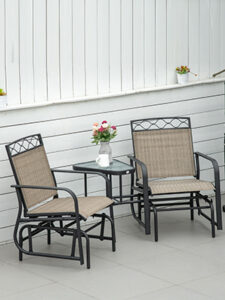 Outsunny Double Outdoor Glider Chair, 2 Seater Patio Rocking Chairs, Swing Bench with Tempered Glass Table, Breathable Mesh Fabric for Backyard, Garden, Porch, Brow