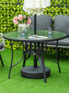 Outsunny 106cm Round Garden Dining Table with Parasol Hole Tempered Glass Top Steel Frame