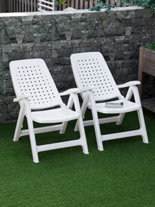 Outsunny Set of 2 Folding Plastic Dining Chairs with 4-Position Backrest, Reclining Armchairs for Indoor & Outdoor Events, Camping, White