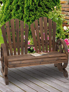 Outsunny 2 Seater Garden Bench Comfortable Fir Logs Love Chair with Wheel-Shaped Armrests, Outdoor Adirondack Wooden Loveseats, Carbonized colou