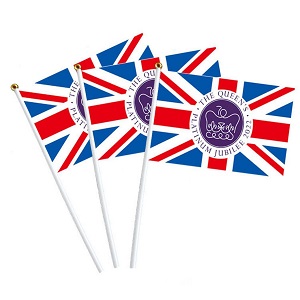 Oyomutk 10pcs Queens Platinum Jubilee Union Jack Flag Hand Waving Flags British Flying Flag Featuring Her Majesty The Queen – British Decorations 14 * 21cm