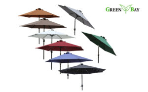VOUNOT 2.7m Shanghai Garden Parasol, Outdoor Patio Table Tilting Parasol Umbrella, with Crank Handle, Protective Cover, 18 Sturdy Ribs, Grey
