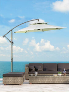VOUNOT 2.7m Shanghai Garden Parasol, Outdoor Patio Table Tilting Parasol Umbrella, with Crank Handle, Protective Cover, 18 Sturdy Ribs, Red