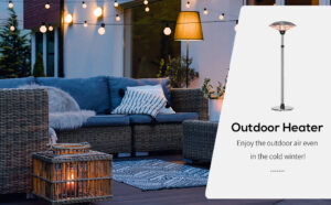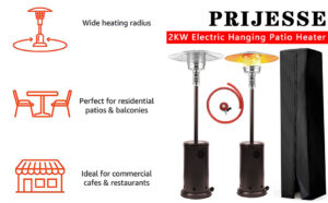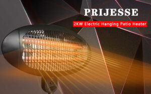 PRIJESSE 2KW Electric Patio Heater, Hanging Quartz Patio Heater, IPX4 Waterproof Infrared Heater, Angle Adjustable, 3 Power Settings