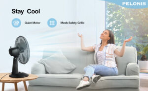 PELONIS Portable Desk Fan 10-Inch / 25cm with 3 Speed 85º Oscillation, 30W Electric Table Fan, Adjustable Head Low Noise, Strong Resistant Base for Home and Office