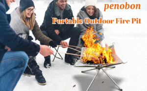 penobon Portable Outdoor Fire Pit for Camping, Foldable 304 Stainless Steel Mesh Wood Burning Bonfire Firepit with Carrying Bag for Camping, Barbecue, Picnic, Garden, Fishing (Size: 56*56*43cm)