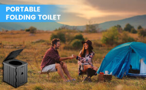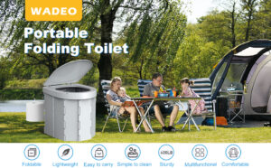 WADEO Upgraded Camping Toilet, Portable Toilet for Adults with Sturdy Support & Comfortable Seat, Folding Toilet with Lid & Toilet Roll Holder, Perfect for Camping, Trip, Car, Gray