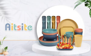 Aitsite Plastic Plates 48PCS, Picnic Plates and Plastic Plates and Bowls Sets, Unbreakable Dinner Sets, Camping Plates and Bowls, Microwave and Lightweight Safe Plates for Camping, Picnic