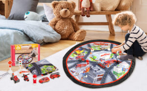 Die Cast Metal Toy Cars with Play Mat, Fire Truck for kids, Small Cars Toys Playset Carpet with Storage Function(70CM)