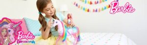 Barbie Dreamtopia Magical Lights Unicorn with Rainbow Mane, Lights & Sounds, Barbie Princess Doll with Pink Hair and Food Accessory, Gift for 3 to 7 Year Olds
