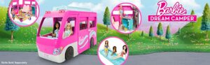 Barbie Camper | DreamCamper Vehicle Playset | 60+ Barbie Accessories and Furniture Pieces | 7 Play Areas Including Pool and Slide | Sticker Sheet