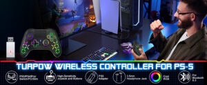 TURPOW Wireless Controller for PS-5 RGB Gamepad Remote Control with Dual Motor Vibration/6-Axis Sensor/Turbo/3.5mm Audio Jack/Touch Pad for Ps-5/Ps-4/Pro/Slim/ (Black)