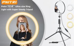 12.6″ Selfie Ring Light with Tripod Stand & Phone Holder, Pnitri Large Ring Light Widen Stand for Live Streaming, Makeup, YouTube, TikTok Video, Photography (Total Height 71″)