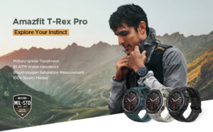 Amazfit T-Rex Pro Smartwatch with Heart Rate, Sleep, Stress Monitoring, SpO2 & Temperature Measurement, Military-grade Design, 100+ Sports Modes, 18-Day Battery Life, 10 ATM Waterproof, Desert Grey