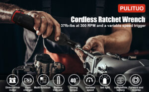PULITUO Cordless Ratchet Wrench,12V Electric Ratchet Wrench Kit 3/8″ 50N.m 300 RPM with 2 x 2000mAh Lithium-Ion Batteries and 60-Min Fast Charge, 10 Sockets, Variable Speed Trigge