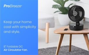 Pro Breeze Turbo Desk Fan – 8” Compact Air Circulator with Quiet DC Motor, 24 Speeds, 4 Operating Modes, 12 Hour Timer for Home, Bedrooms and Office – Black
