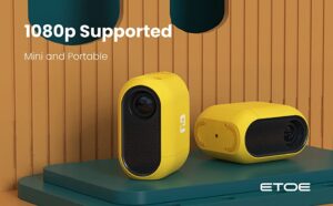 1080p Supported Mini Projector, 2022 Upgraded Video Projector for Cartoon, Movie Projector for Outdoor Use, ETOE D1 Portable Projector Compatible with Laptop, iOS, Android, and TV Stick for Christmas