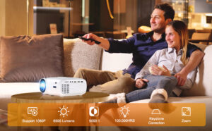 Dursilre WiFi Mini Projector with Projection Screen Supported 1080P Full HD Enhanced Portable Projector Compatible with Smartphone/ Tablet/ Laptop/ PS3/ PS4/ TV Stick for Home Theatre Yellow