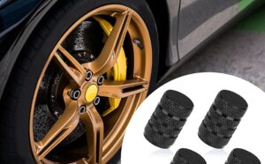Black Dust Caps for Car Tyres, PROUSKY 4 Pieces Aluminum Alloy Tyre Valve Dust Caps, Easy-grip Knurled Car Tire Valve Stem Caps Valve Covers Replacement with O-ring Gasket for Cars, Bike, Motorcycle