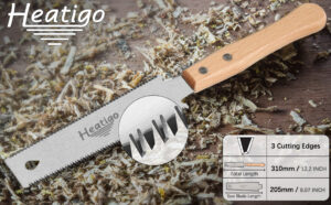 Small Japanese Hand Saw for Fine Cutting Wood, Heatigo Double Edged 11/17 TPI Flush Cut Saw, Wooden Handle Fine Tooth Pull Saw for Trimming Pruning Woodworking Tool