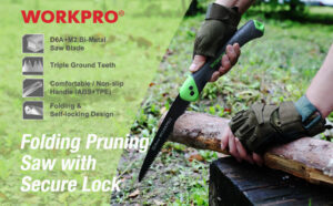 WORKPRO Pruning Saw, 7” Folding Hand Saw with Secure Lock, Bi-Metal D6A+M2 Saw Blade, Triple Teeth, Push Button, Soft Grip Folding Saw for Wood Gardening Camping Bushcraf