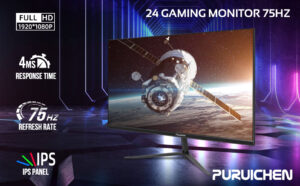 24 Inch Business Computer Monitor Full HD 1920x 1080 Monitor, 3000:1 Contrast Ratio Frameless Display, 4ms, HDMI, VGA, VESA, 16.7 Million Colors PC Screen, Black