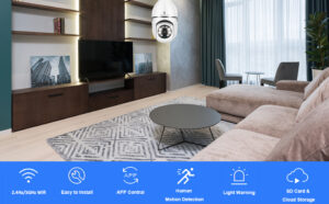Light Bulb Camera,1080P Wireless Security Camera with 2.4GHz/5GHz WiFi,360 Degree Pan/Tilt Human Motion Detection Two Way Audio Color Night Vision (White)