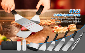 Griddle Accessories Kit Spatula for Blackstone: 9Pcs Flat Top Grill Accessories Set for Camp Chef – Professional Grill Spatula Tools for Men Women Outdoor BBQ Teppanyaki Camping