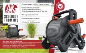 Giraffe Tools Retractable Hose Reel Wall Mounted, 35+2m Garden Hose Reel, 180° Pivot with 7 in 1 Spray Nozzle and Learder Hose