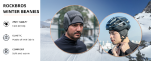ROCKBROS Winter Beanies Hat Cycling Hat Fit Under Helmet Skiing Running Cap for Outdoor Activities Black Grey