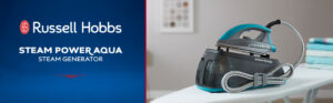 Russell Hobbs 24510 Steam Power Aqua – Steam Generator Iron with Stainless Steel Non-Stick Soleplate ans Fast 1 Minute Heat-Up, 1.3 Litres, 2400 Watts, Aqua