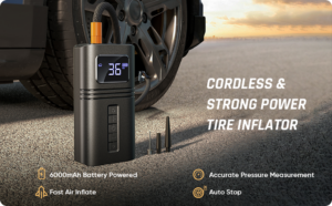 RYSEAB [Cordless & Strong Power] Tyre Inflator Portable Air Compressor Pump with 6000mAh Battery for Car Tyre, [Fast Inflate 150PSI] Digital Electric Tyre Pump with LED Light for Car Bike Motor Ball