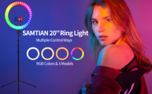 20″ RGB Ring Light with Stand, SAMTIAN Customize Mode 360° Full Color Ring Light Kit with Phone Holder, Wireless Remote/App Control for Makeup, YouTube, Tiktok, Video, Vlogging