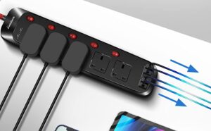 Sandrem Extension Lead with USB Slots, Power Socket with 5 Outlet, 4 USB-A and 1 USB-C, 6-Foot(1.8m) long Extension Cord, Surge Protection Plug xtension Socket with Individual Switched