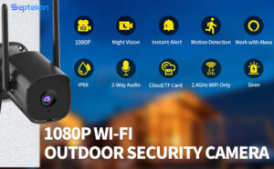 Security Camera Outdoor, Septekon 1080P CCTV Camera Wireless WiFi, Waterproof Home Surveillance Camera with 2-Way Audio, Night Vision, Motion Detection, Cloud Storage, Work with Alexa – S5