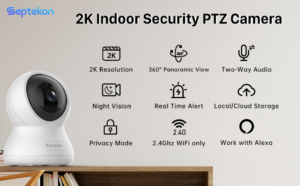 Septekon 2K FHD WiFi Camera Security Camera indoor – 360° Pan Tilt Security Camera – Wireless Baby Camera, Pet Camera – Cloud Storage – Night Vision CCTV Camera Works with Alexa – H40i, Black