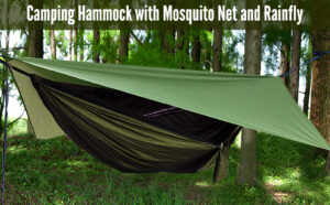 OTraki Camping Hammock with Mosquito Net and Rainfly Tarp 200kg Load Capacity 290 x 140 cm Nylon Double Hammock Lightweight for Travel Outdoor Hiking Backpacking Picnic Garden (ArmyGreen)