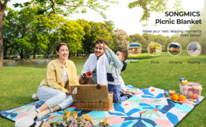 SONGMICS Picnic Blanket, 200 x 200 cm, Large Camping Picnic Rug and Mat for Beach, Park, Yard, Outdoors with Waterproof Layer, Machine Washable, Foldable, Colourful Fern GCM087Q03