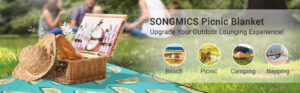 SONGMICS Picnic Blanket, 200 x 150 cm, Large Camping Picnic Rug and Mat for Beach, Park, Yard, Outdoors with Waterproof Layer, Machine Washable, Foldable, Lemon Pattern GCM085C01