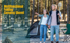AT MOUSE Heavy Duty Folding Shovel, Multifunctional Accessories Tools, Camping, Hiking, Backpacking, Garden, Beach, Trench Entrenching Tool