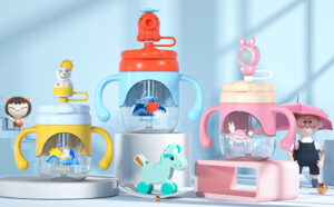 Bunnytoo 2 in 1 Starter Cup & Sippy Cup for Toddlers 260ML, Baby Cups Toddler Water Bottles with Handles for Babies 6 Months +,Independent Drinking,Leak-Proof Silicone Spout, BPA-Free/Blue