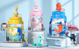 3 in 1 Sippy Cup & Children’s Water Bottle with Straw and A Shoulder Strap , Trainer Cup Remove The Straw for Independent Drinking for Toddlers 12 Months +,Leak-Proof, Shatter-Proof, Bpa-Free -Blue